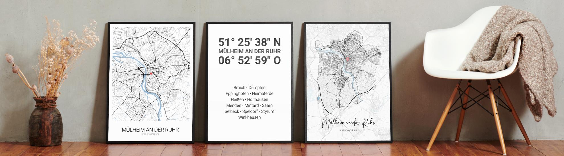 Wähle Farben und Layouts, die perfekt zu dir passen. Ob als klassische Karte in schwarz-weiß oder in modernen Farben. Bei Cartida kannst du ein Design in deinen Lieblingsfarben wählen. Erstelle eine Variante von Mülheim an der Ruhr, die perfekt zu dir und deiner Wohnung passt.