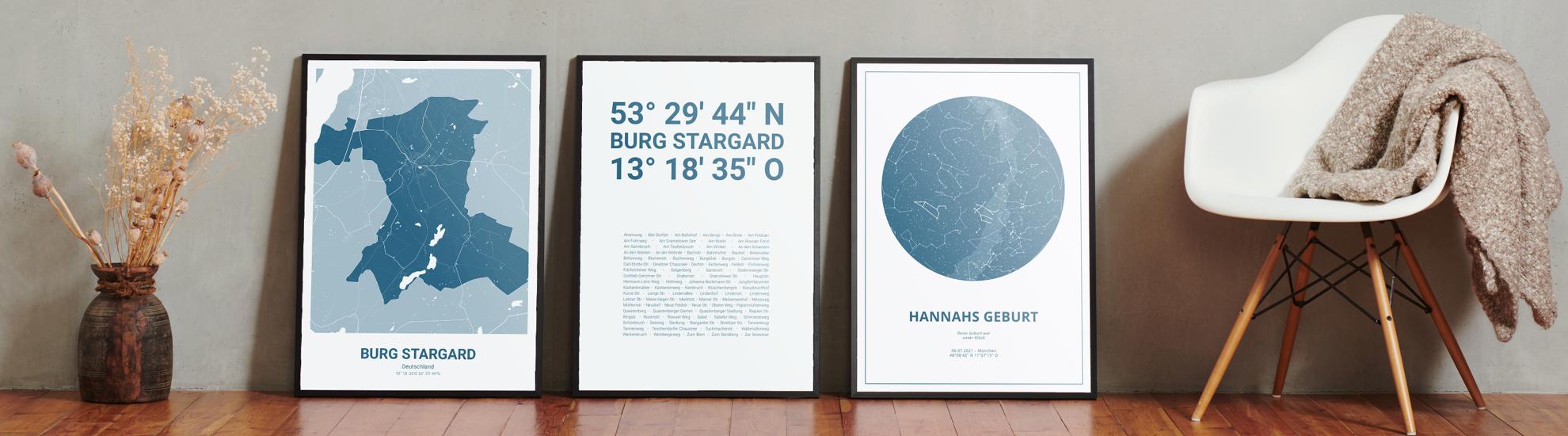 Wähle Farben und Layouts, die perfekt zu dir passen. Ob als klassische Karte in schwarz-weiß oder in modernen Farben. Bei Cartida kannst du ein Design in deinen Lieblingsfarben wählen. Erstelle eine Variante von Burg Stargard, die perfekt zu dir und deiner Wohnung passt.