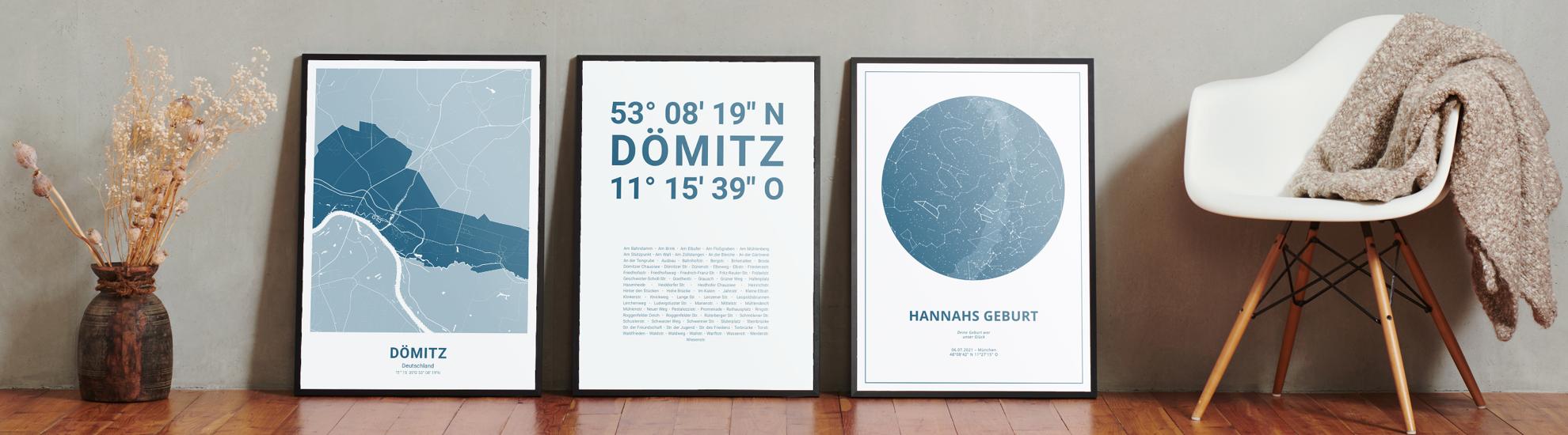 Wähle Farben und Layouts, die perfekt zu dir passen. Ob als klassische Karte in schwarz-weiß oder in modernen Farben. Bei Cartida kannst du ein Design in deinen Lieblingsfarben wählen. Erstelle eine Variante von Dömitz, die perfekt zu dir und deiner Wohnung passt.