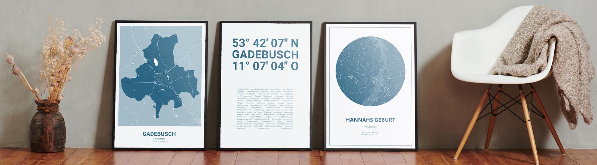 Wähle Farben und Layouts, die perfekt zu dir passen. Ob als klassische Karte in schwarz-weiß oder in modernen Farben. Bei Cartida kannst du ein Design in deinen Lieblingsfarben wählen. Erstelle eine Variante von Gadebusch, die perfekt zu dir und deiner Wohnung passt.