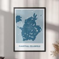 Wähle Farben und Layouts, die perfekt zu dir passen. Ob als klassische Karte in schwarz-weiß oder in modernen Farben. Bei Cartida kannst du ein Design in deinen Lieblingsfarben wählen. Erstelle eine Variante von Clausthal-Zellerfeld, die perfekt zu dir und deiner Wohnung passt.