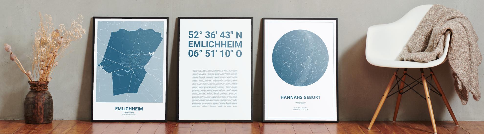 Zahlen, die die Welt bedeuten. Erstelle jetzt dein persönliches Koordinaten-Kunstwerk von deiner Lieblingsstadt. Entscheide selbst, ob Stadtteile, Straßen oder ganz eigene Texte abgedruckt werden. Perfekt als Geschenk zum Einzug oder für die eigenen vier Wände.