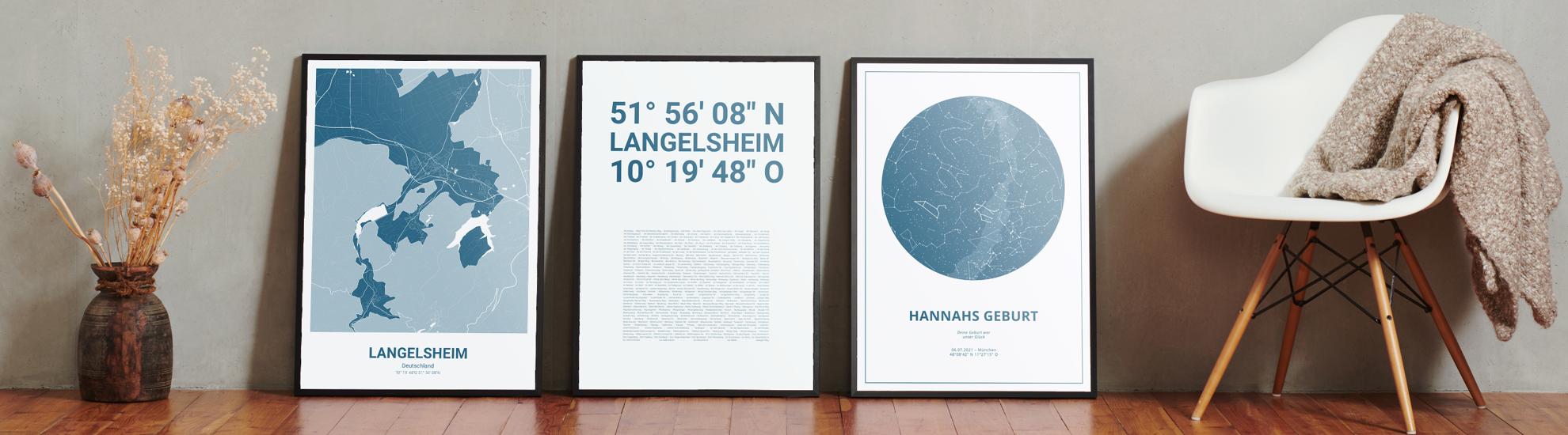 Wähle Farben und Layouts, die perfekt zu dir passen. Ob als klassische Karte in schwarz-weiß oder in modernen Farben. Bei Cartida kannst du ein Design in deinen Lieblingsfarben wählen. Erstelle eine Variante von Langelsheim, die perfekt zu dir und deiner Wohnung passt.