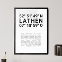 Zahlen, die die Welt bedeuten. Erstelle jetzt dein persönliches Koordinaten-Kunstwerk von deiner Lieblingsstadt. Entscheide selbst, ob Stadtteile, Straßen oder ganz eigene Texte abgedruckt werden. Perfekt als Geschenk zum Einzug oder für die eigenen vier Wände.