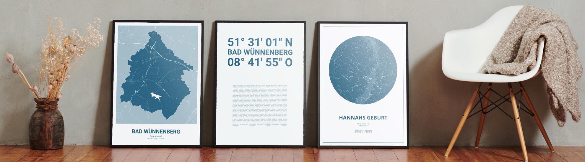 Wähle Farben und Layouts, die perfekt zu dir passen. Ob als klassische Karte in schwarz-weiß oder in modernen Farben. Bei Cartida kannst du ein Design in deinen Lieblingsfarben wählen. Erstelle eine Variante von Bad Wünnenberg, die perfekt zu dir und deiner Wohnung passt.