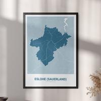 Wähle Farben und Layouts, die perfekt zu dir passen. Ob als klassische Karte in schwarz-weiß oder in modernen Farben. Bei Cartida kannst du ein Design in deinen Lieblingsfarben wählen. Erstelle eine Variante von Eslohe (Sauerland), die perfekt zu dir und deiner Wohnung passt.