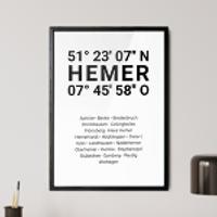 Zahlen, die die Welt bedeuten. Erstelle jetzt dein persönliches Koordinaten-Kunstwerk von deiner Lieblingsstadt. Entscheide selbst, ob Stadtteile, Straßen oder ganz eigene Texte abgedruckt werden. Perfekt als Geschenk zum Einzug oder für die eigenen vier Wände.