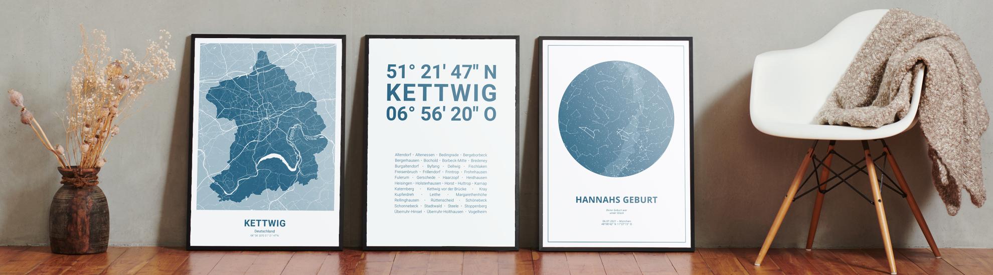 Wähle Farben und Layouts, die perfekt zu dir passen. Ob als klassische Karte in schwarz-weiß oder in modernen Farben. Bei Cartida kannst du ein Design in deinen Lieblingsfarben wählen. Erstelle eine Variante von Kettwig, die perfekt zu dir und deiner Wohnung passt.