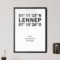 Zahlen, die die Welt bedeuten. Erstelle jetzt dein persönliches Koordinaten-Kunstwerk von deiner Lieblingsstadt. Entscheide selbst, ob Stadtteile, Straßen oder ganz eigene Texte abgedruckt werden. Perfekt als Geschenk zum Einzug oder für die eigenen vier Wände.
