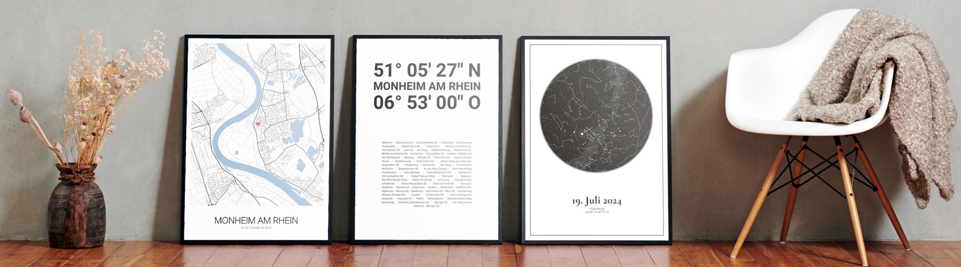 Du suchst etwas anderes? Verewige deine Erinnerungen als Sternenkarte oder auch als Textkunst. Lass dich inspirieren und hole dir jetzt deine Erinnerungen nach Hause.
