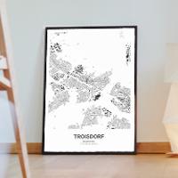 Wähle Farben und Layouts, die perfekt zu dir passen. Ob als klassische Karte in schwarz-weiß oder in modernen Farben. Bei Cartida kannst du ein Design in deinen Lieblingsfarben wählen. Erstelle eine Variante von Troisdorf, die perfekt zu dir und deiner Wohnung passt.