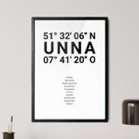 Zahlen, die die Welt bedeuten. Erstelle jetzt dein persönliches Koordinaten-Kunstwerk von deiner Lieblingsstadt. Entscheide selbst, ob Stadtteile, Straßen oder ganz eigene Texte abgedruckt werden. Perfekt als Geschenk zum Einzug oder für die eigenen vier Wände.