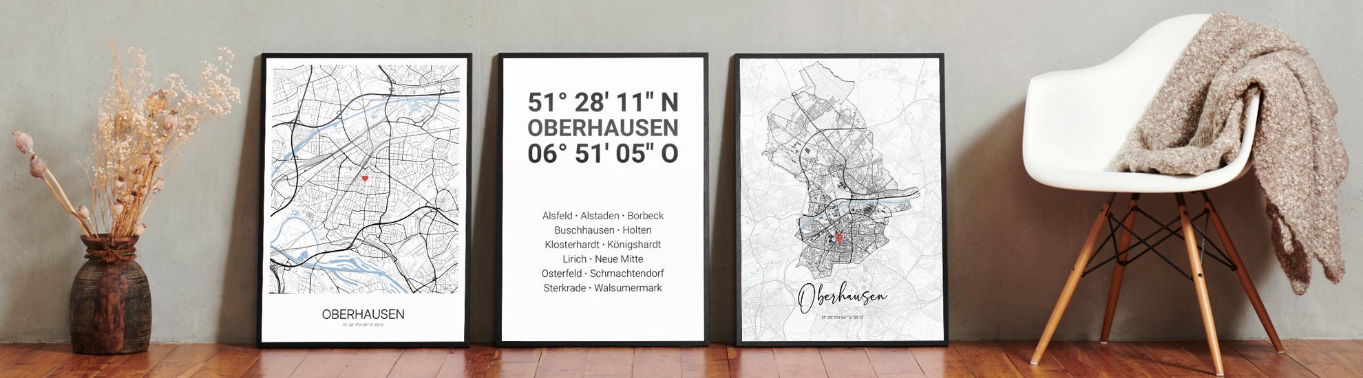 Wähle Farben und Layouts, die perfekt zu dir passen. Ob als klassische Karte in schwarz-weiß oder in modernen Farben. Bei Cartida kannst du ein Design in deinen Lieblingsfarben wählen. Erstelle eine Variante von Oberhausen, die perfekt zu dir und deiner Wohnung passt.