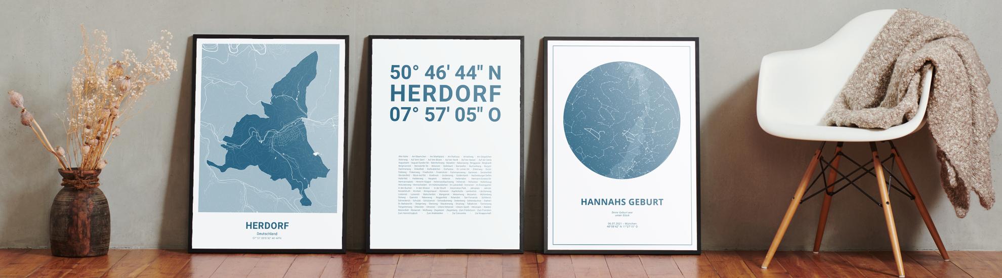 Wähle Farben und Layouts, die perfekt zu dir passen. Ob als klassische Karte in schwarz-weiß oder in modernen Farben. Bei Cartida kannst du ein Design in deinen Lieblingsfarben wählen. Erstelle eine Variante von Herdorf, die perfekt zu dir und deiner Wohnung passt.