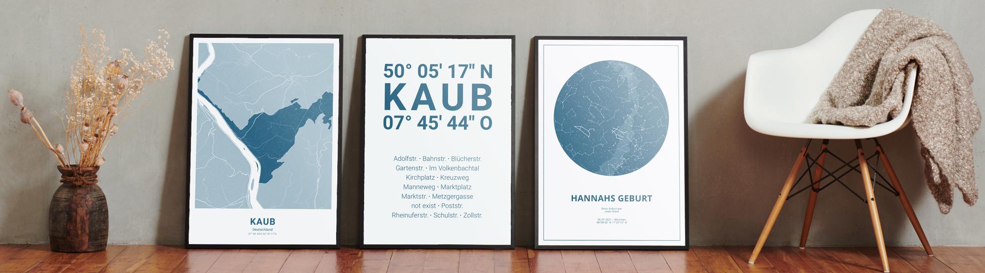 Wähle Farben und Layouts, die perfekt zu dir passen. Ob als klassische Karte in schwarz-weiß oder in modernen Farben. Bei Cartida kannst du ein Design in deinen Lieblingsfarben wählen. Erstelle eine Variante von Kaub, die perfekt zu dir und deiner Wohnung passt.