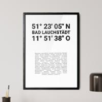 Zahlen, die die Welt bedeuten. Erstelle jetzt dein persönliches Koordinaten-Kunstwerk von deiner Lieblingsstadt. Entscheide selbst, ob Stadtteile, Straßen oder ganz eigene Texte abgedruckt werden. Perfekt als Geschenk zum Einzug oder für die eigenen vier Wände.
