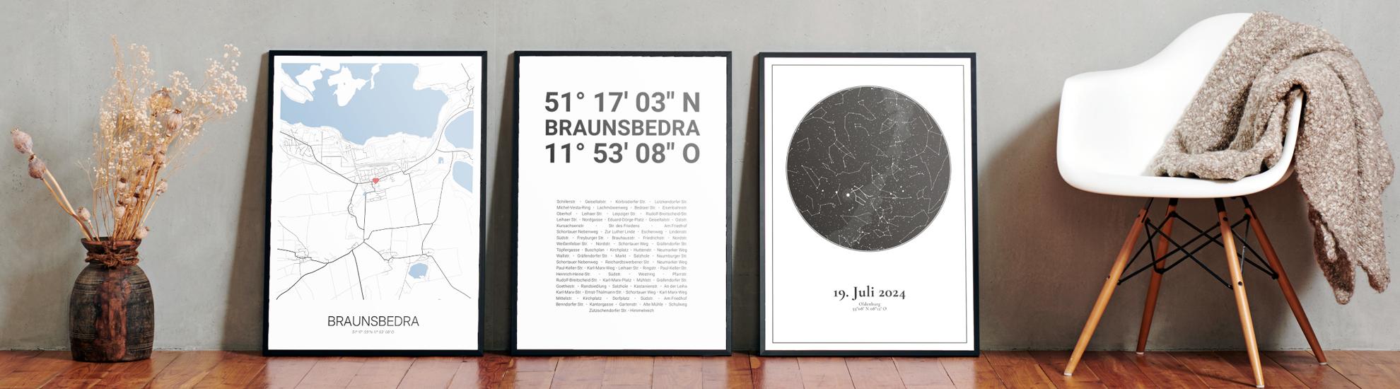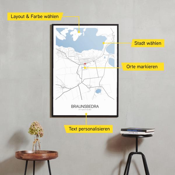 Wähle Farben und Layouts, die perfekt zu dir passen. Ob als klassische Karte in schwarz-weiß oder in modernen Farben. Bei Cartida kannst du ein Design in deinen Lieblingsfarben wählen. Erstelle eine Variante von Braunsbedra, die perfekt zu dir und deiner Wohnung passt.
