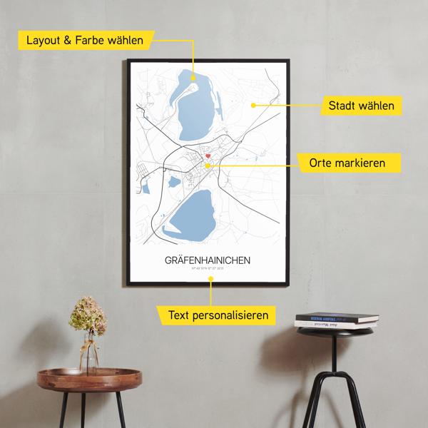 Wähle Farben und Layouts, die perfekt zu dir passen. Ob als klassische Karte in schwarz-weiß oder in modernen Farben. Bei Cartida kannst du ein Design in deinen Lieblingsfarben wählen. Erstelle eine Variante von Gräfenhainichen, die perfekt zu dir und deiner Wohnung passt.