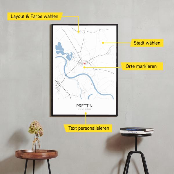 Wähle Farben und Layouts, die perfekt zu dir passen. Ob als klassische Karte in schwarz-weiß oder in modernen Farben. Bei Cartida kannst du ein Design in deinen Lieblingsfarben wählen. Erstelle eine Variante von Prettin, die perfekt zu dir und deiner Wohnung passt.