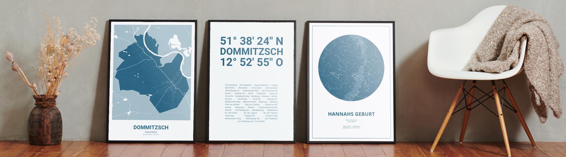 Wähle Farben und Layouts, die perfekt zu dir passen. Ob als klassische Karte in schwarz-weiß oder in modernen Farben. Bei Cartida kannst du ein Design in deinen Lieblingsfarben wählen. Erstelle eine Variante von Dommitzsch, die perfekt zu dir und deiner Wohnung passt.
