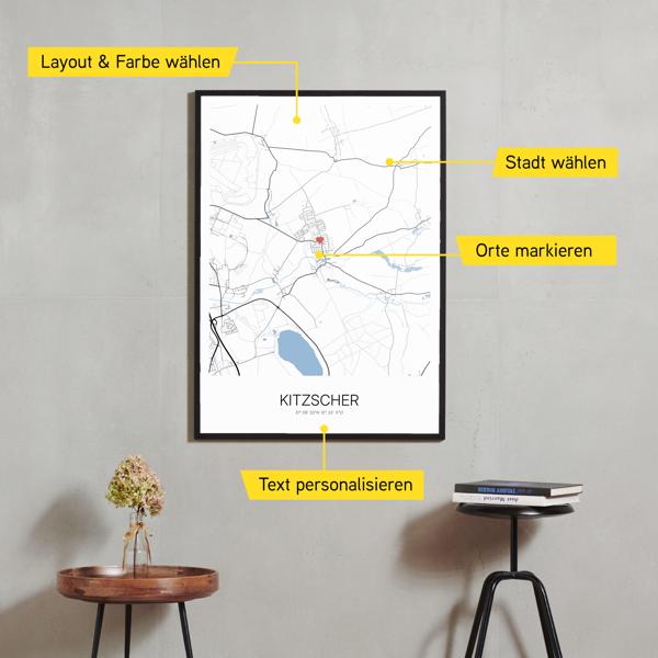 Wähle Farben und Layouts, die perfekt zu dir passen. Ob als klassische Karte in schwarz-weiß oder in modernen Farben. Bei Cartida kannst du ein Design in deinen Lieblingsfarben wählen. Erstelle eine Variante von Kitzscher, die perfekt zu dir und deiner Wohnung passt.