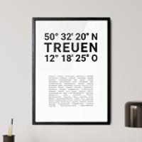 Zahlen, die die Welt bedeuten. Erstelle jetzt dein persönliches Koordinaten-Kunstwerk von deiner Lieblingsstadt. Entscheide selbst, ob Stadtteile, Straßen oder ganz eigene Texte abgedruckt werden. Perfekt als Geschenk zum Einzug oder für die eigenen vier Wände.