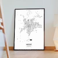 Bilder, die Geschichten erzählen über Reisen, Liebe und Erinnerungen. Wir bei Cartida haben deine Stadtkarte von Heide in Schleswig-Holstein, Deutschland. Dargestellt als Schwarzplan mit Gebäuden oder als Minimal City Map mit filigranen Straßennetz.