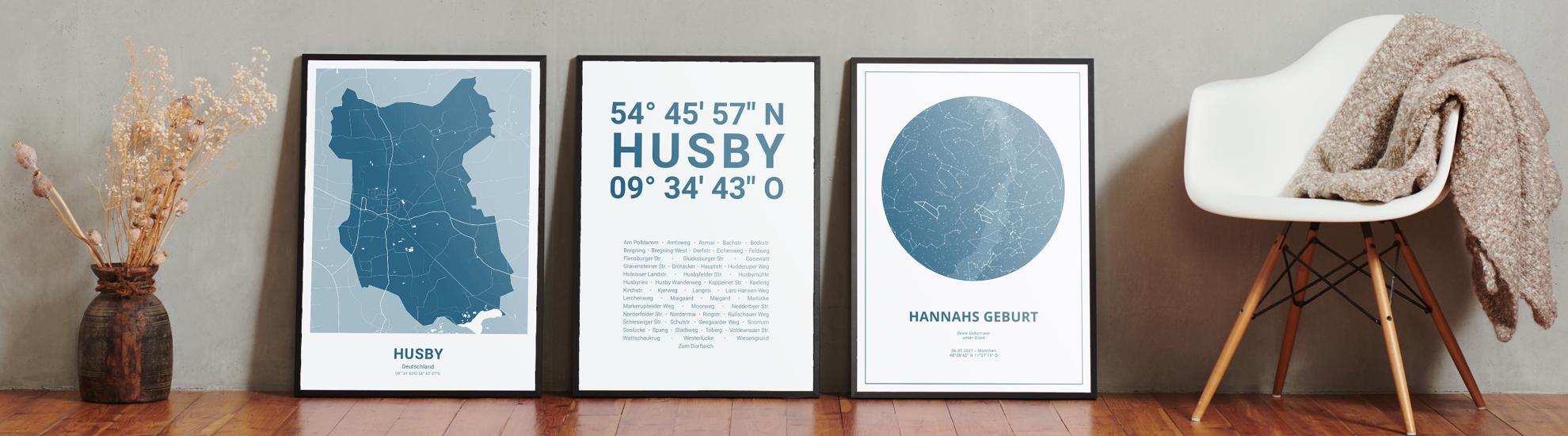 Wähle Farben und Layouts, die perfekt zu dir passen. Ob als klassische Karte in schwarz-weiß oder in modernen Farben. Bei Cartida kannst du ein Design in deinen Lieblingsfarben wählen. Erstelle eine Variante von Husby, die perfekt zu dir und deiner Wohnung passt.