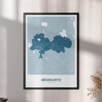Wähle Farben und Layouts, die perfekt zu dir passen. Ob als klassische Karte in schwarz-weiß oder in modernen Farben. Bei Cartida kannst du ein Design in deinen Lieblingsfarben wählen. Erstelle eine Variante von Meuselwitz, die perfekt zu dir und deiner Wohnung passt.