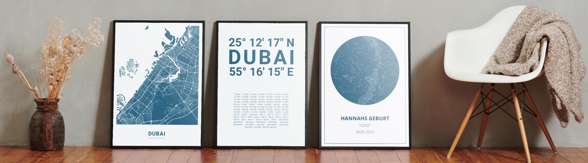 Wähle Farben und Layouts, die perfekt zu dir passen. Ob als klassische Karte in schwarz-weiß oder in modernen Farben. Bei Cartida kannst du ein Design in deinen Lieblingsfarben wählen. Erstelle eine Variante von Dubai, die perfekt zu dir und deiner Wohnung passt.