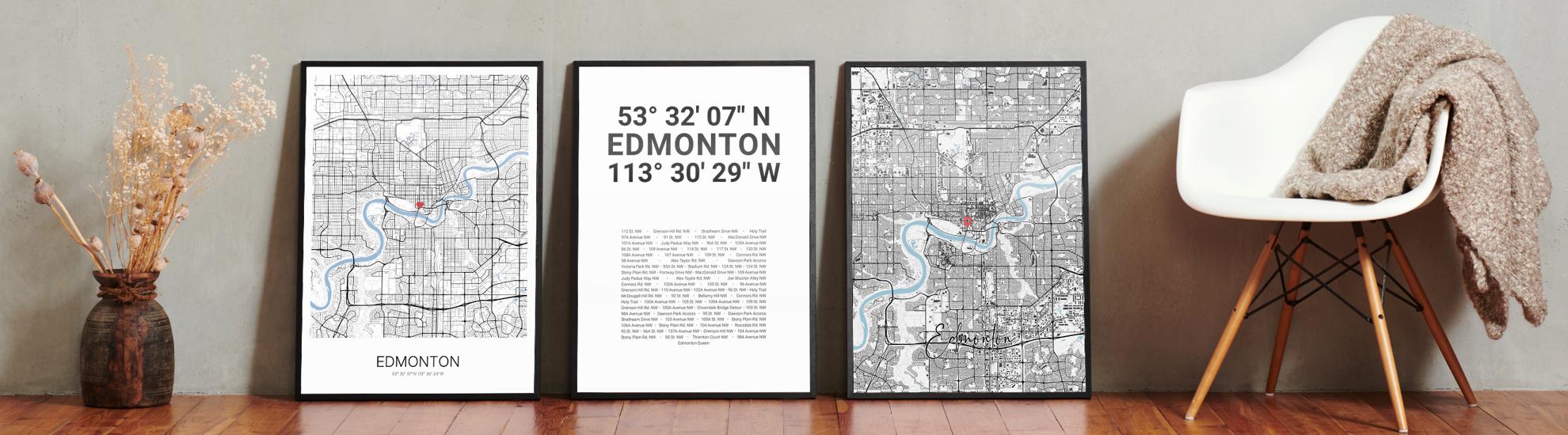 Wähle Farben und Layouts, die perfekt zu dir passen. Ob als klassische Karte in schwarz-weiß oder in modernen Farben. Bei Cartida kannst du ein Design in deinen Lieblingsfarben wählen. Erstelle eine Variante von Edmonton, die perfekt zu dir und deiner Wohnung passt.