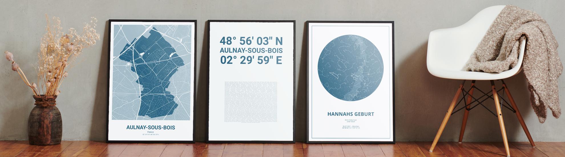 Wähle Farben und Layouts, die perfekt zu dir passen. Ob als klassische Karte in schwarz-weiß oder in modernen Farben. Bei Cartida kannst du ein Design in deinen Lieblingsfarben wählen. Erstelle eine Variante von Aulnay-sous-Bois, die perfekt zu dir und deiner Wohnung passt.