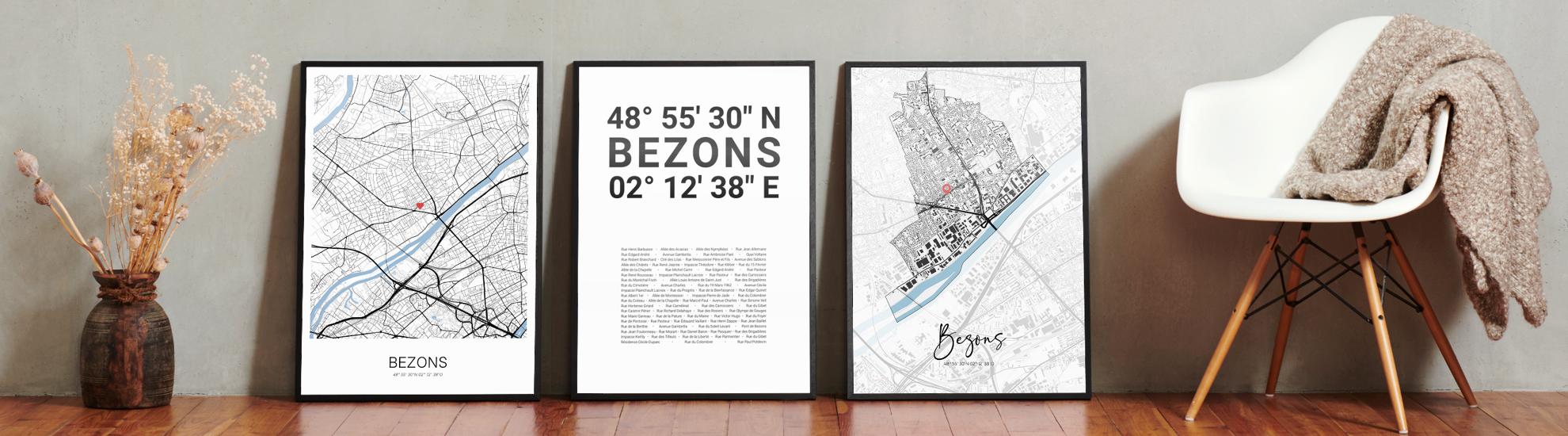 Wähle Farben und Layouts, die perfekt zu dir passen. Ob als klassische Karte in schwarz-weiß oder in modernen Farben. Bei Cartida kannst du ein Design in deinen Lieblingsfarben wählen. Erstelle eine Variante von Bezons, die perfekt zu dir und deiner Wohnung passt.