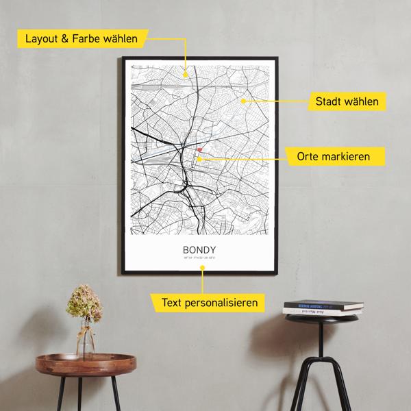 Wir bei Cartida haben alle deine Lieblingsorte. Erstelle im Cartida-Editor dein persönlichen Stadtplan für dich und dein Zuhause. Einfach den Ort eingeben und nach deinen Wünschen personalisieren: Markiere die wichtigsten Orte, wähle deine Lieblingsfarben und füge die Koordinaten und einen persönlichen Text hinzu.