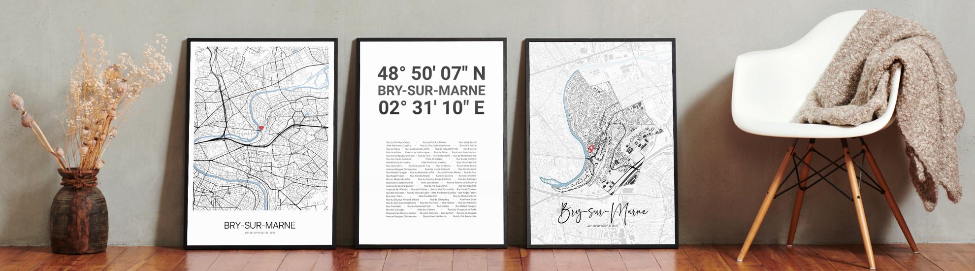 Wähle Farben und Layouts, die perfekt zu dir passen. Ob als klassische Karte in schwarz-weiß oder in modernen Farben. Bei Cartida kannst du ein Design in deinen Lieblingsfarben wählen. Erstelle eine Variante von Bry-sur-Marne, die perfekt zu dir und deiner Wohnung passt.