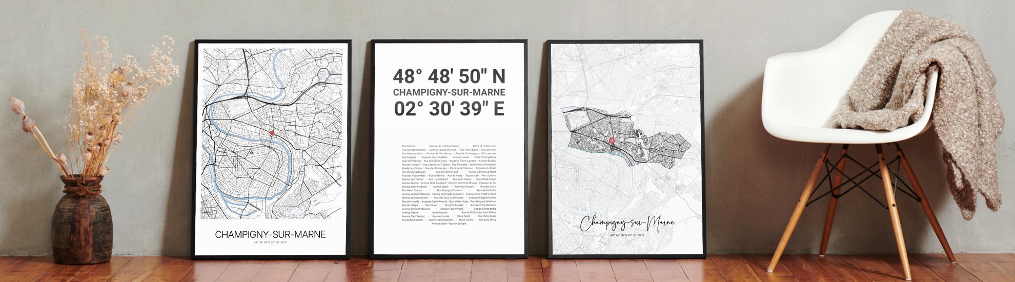 Wähle Farben und Layouts, die perfekt zu dir passen. Ob als klassische Karte in schwarz-weiß oder in modernen Farben. Bei Cartida kannst du ein Design in deinen Lieblingsfarben wählen. Erstelle eine Variante von Champigny-sur-Marne, die perfekt zu dir und deiner Wohnung passt.