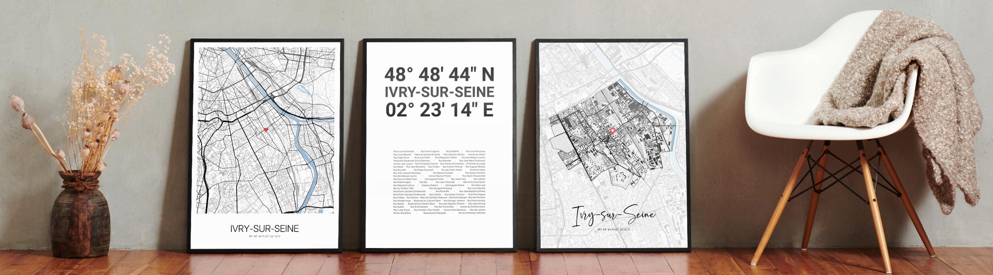 Wähle Farben und Layouts, die perfekt zu dir passen. Ob als klassische Karte in schwarz-weiß oder in modernen Farben. Bei Cartida kannst du ein Design in deinen Lieblingsfarben wählen. Erstelle eine Variante von Ivry-sur-Seine, die perfekt zu dir und deiner Wohnung passt.