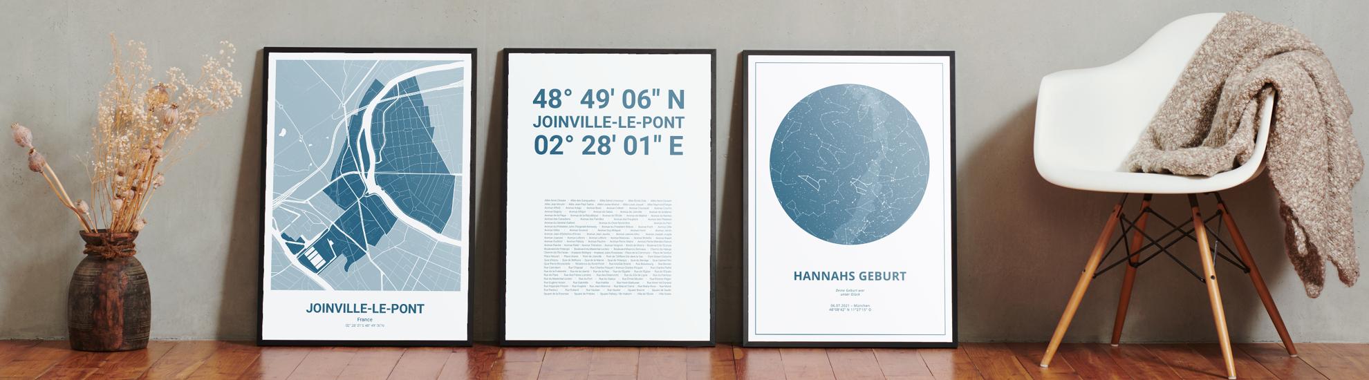 Zahlen, die die Welt bedeuten. Erstelle jetzt dein persönliches Koordinaten-Kunstwerk von deiner Lieblingsstadt. Entscheide selbst, ob Stadtteile, Straßen oder ganz eigene Texte abgedruckt werden. Perfekt als Geschenk zum Einzug oder für die eigenen vier Wände.