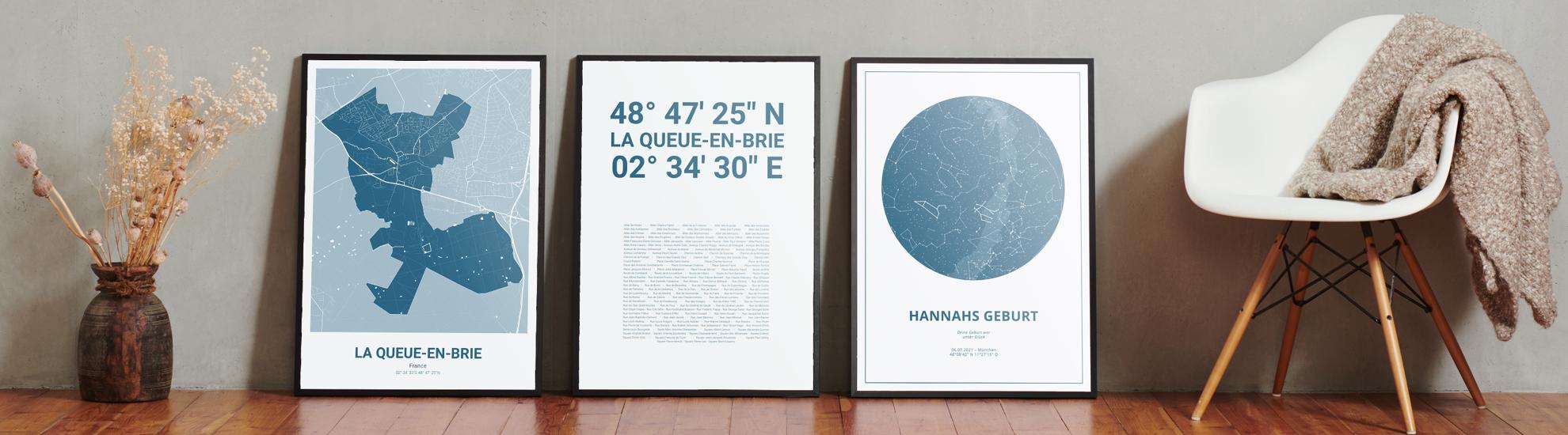 Wähle Farben und Layouts, die perfekt zu dir passen. Ob als klassische Karte in schwarz-weiß oder in modernen Farben. Bei Cartida kannst du ein Design in deinen Lieblingsfarben wählen. Erstelle eine Variante von La Queue-en-Brie, die perfekt zu dir und deiner Wohnung passt.
