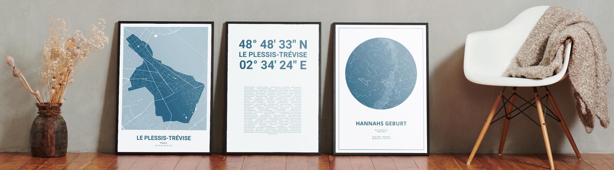 Wähle Farben und Layouts, die perfekt zu dir passen. Ob als klassische Karte in schwarz-weiß oder in modernen Farben. Bei Cartida kannst du ein Design in deinen Lieblingsfarben wählen. Erstelle eine Variante von Le Plessis-Trévise, die perfekt zu dir und deiner Wohnung passt.