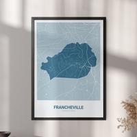 Wähle Farben und Layouts, die perfekt zu dir passen. Ob als klassische Karte in schwarz-weiß oder in modernen Farben. Bei Cartida kannst du ein Design in deinen Lieblingsfarben wählen. Erstelle eine Variante von Francheville, die perfekt zu dir und deiner Wohnung passt.