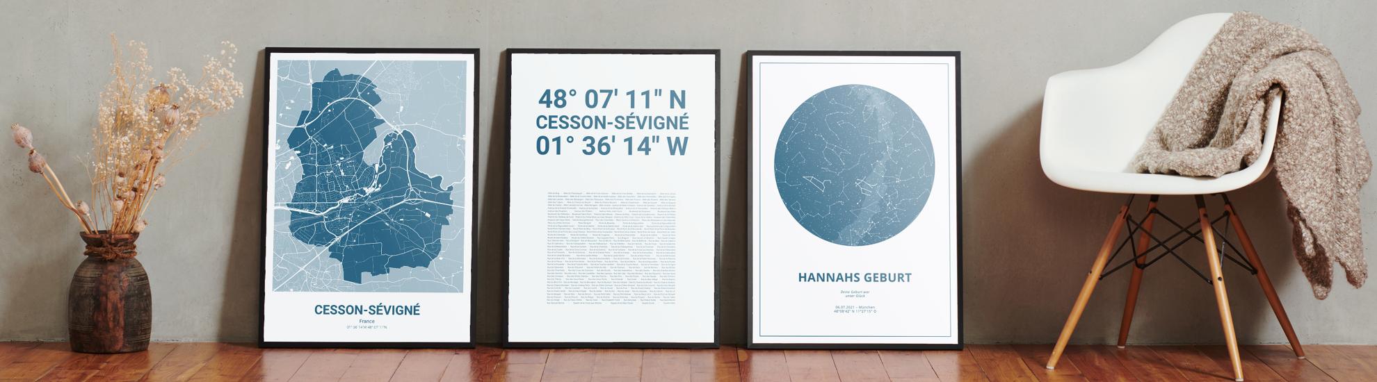 Wähle Farben und Layouts, die perfekt zu dir passen. Ob als klassische Karte in schwarz-weiß oder in modernen Farben. Bei Cartida kannst du ein Design in deinen Lieblingsfarben wählen. Erstelle eine Variante von Cesson-Sévigné, die perfekt zu dir und deiner Wohnung passt.