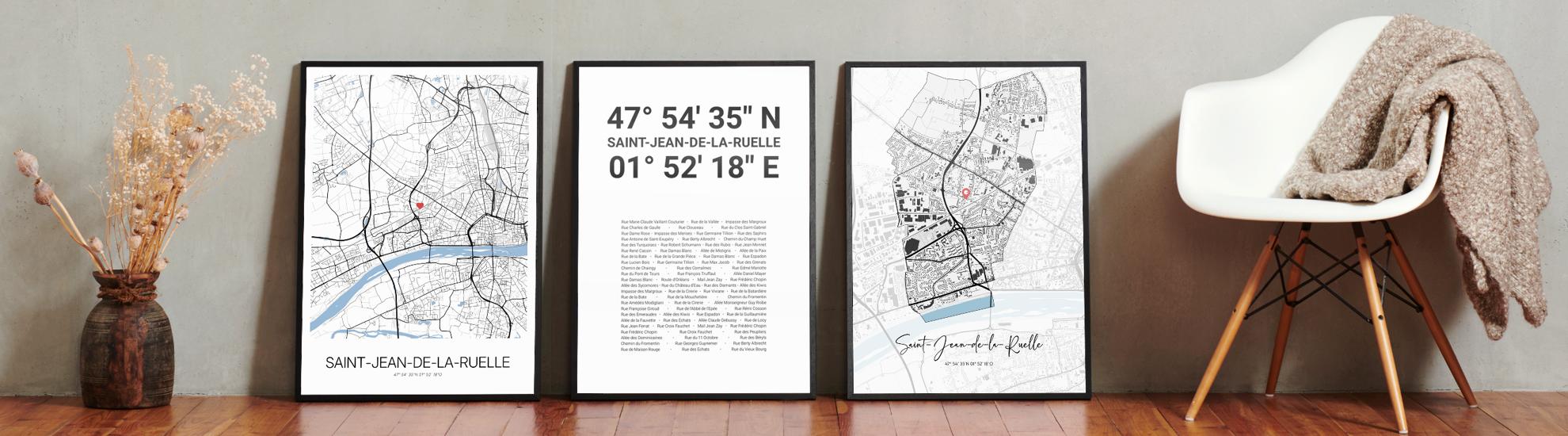Wähle Farben und Layouts, die perfekt zu dir passen. Ob als klassische Karte in schwarz-weiß oder in modernen Farben. Bei Cartida kannst du ein Design in deinen Lieblingsfarben wählen. Erstelle eine Variante von Saint-Jean-de-la-Ruelle, die perfekt zu dir und deiner Wohnung passt.