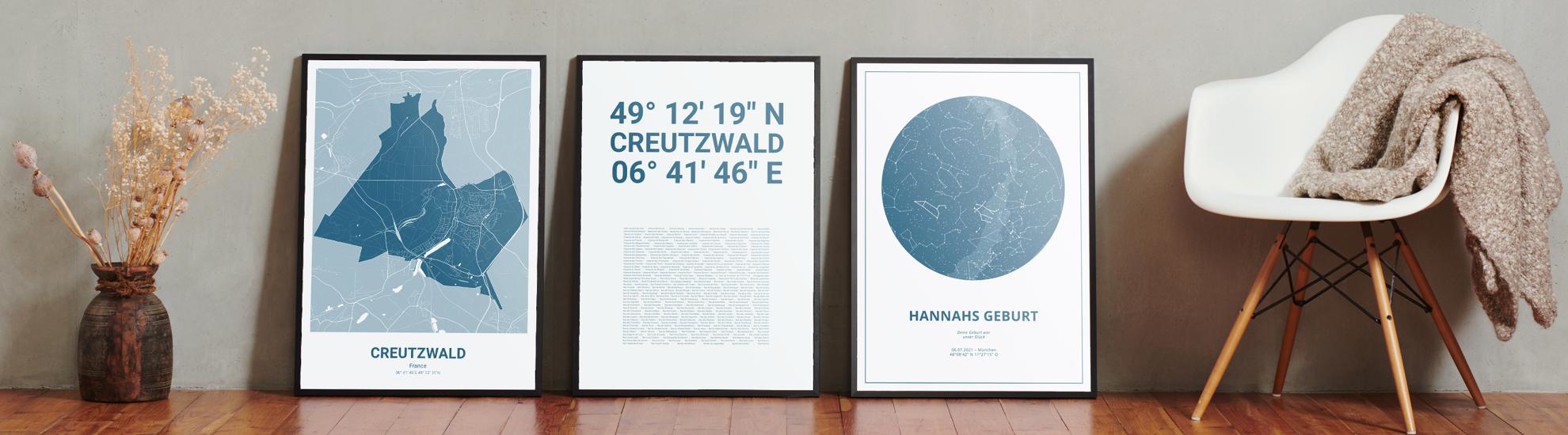Wähle Farben und Layouts, die perfekt zu dir passen. Ob als klassische Karte in schwarz-weiß oder in modernen Farben. Bei Cartida kannst du ein Design in deinen Lieblingsfarben wählen. Erstelle eine Variante von Creutzwald, die perfekt zu dir und deiner Wohnung passt.