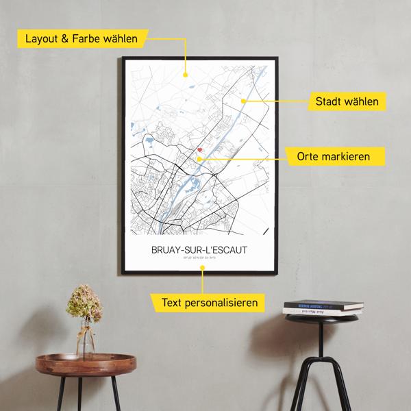 Wähle Farben und Layouts, die perfekt zu dir passen. Ob als klassische Karte in schwarz-weiß oder in modernen Farben. Bei Cartida kannst du ein Design in deinen Lieblingsfarben wählen. Erstelle eine Variante von Bruay-sur-l'Escaut, die perfekt zu dir und deiner Wohnung passt.