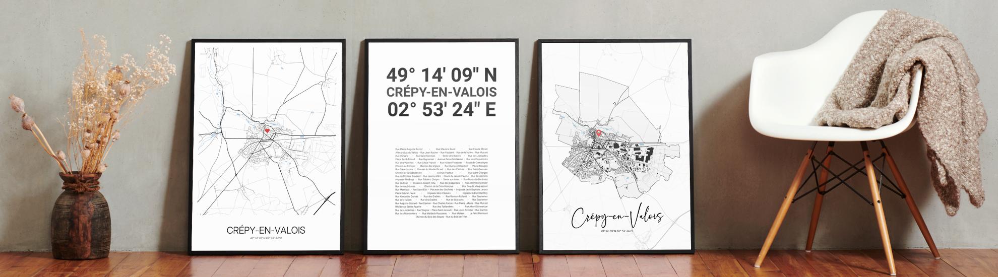 Wähle Farben und Layouts, die perfekt zu dir passen. Ob als klassische Karte in schwarz-weiß oder in modernen Farben. Bei Cartida kannst du ein Design in deinen Lieblingsfarben wählen. Erstelle eine Variante von Crépy-en-Valois, die perfekt zu dir und deiner Wohnung passt.