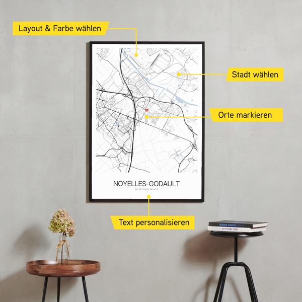 Wähle Farben und Layouts, die perfekt zu dir passen. Ob als klassische Karte in schwarz-weiß oder in modernen Farben. Bei Cartida kannst du ein Design in deinen Lieblingsfarben wählen. Erstelle eine Variante von Noyelles-Godault, die perfekt zu dir und deiner Wohnung passt.