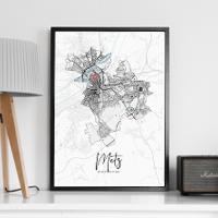 Bilder, die Geschichten erzählen über Reisen, Liebe und Erinnerungen. Wir bei Cartida haben deine Stadtkarte von Metz in Grand Est, Frankreich. Dargestellt als Schwarzplan mit Gebäuden oder als Minimal City Map mit filigranen Straßennetz.