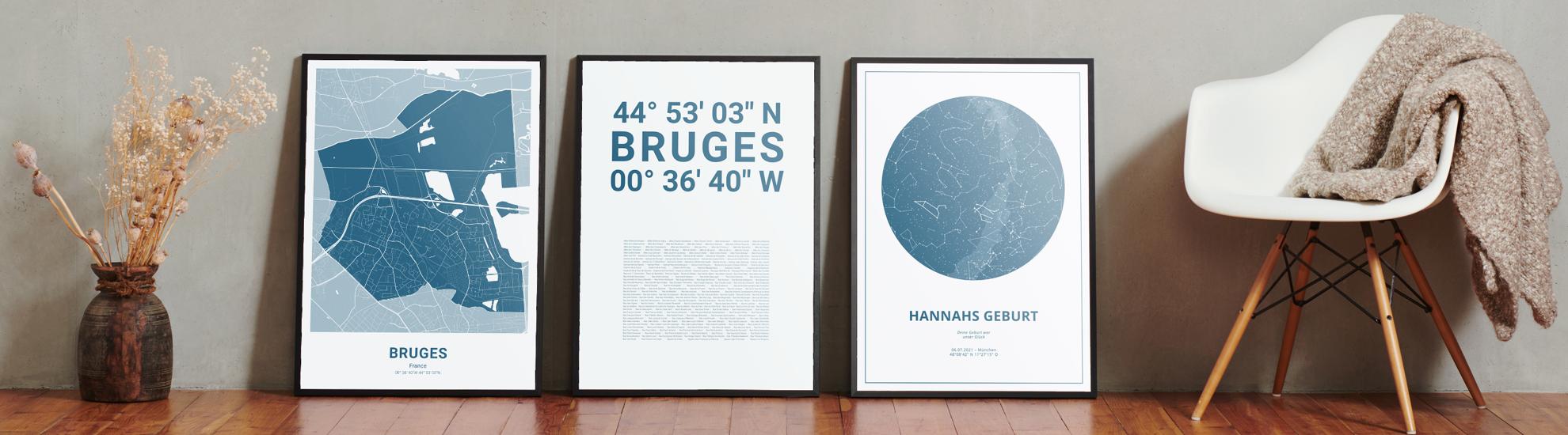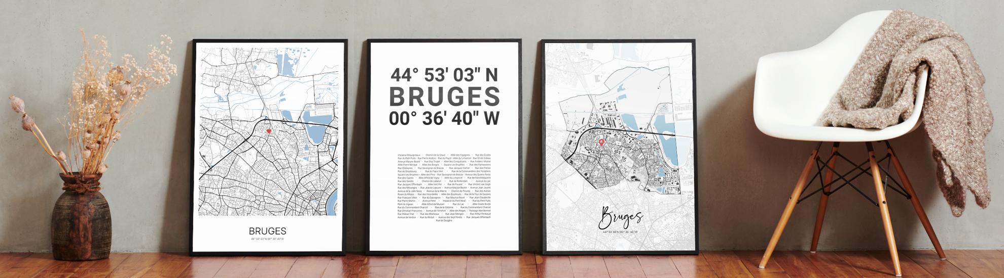 Wähle Farben und Layouts, die perfekt zu dir passen. Ob als klassische Karte in schwarz-weiß oder in modernen Farben. Bei Cartida kannst du ein Design in deinen Lieblingsfarben wählen. Erstelle eine Variante von Bruges, die perfekt zu dir und deiner Wohnung passt.