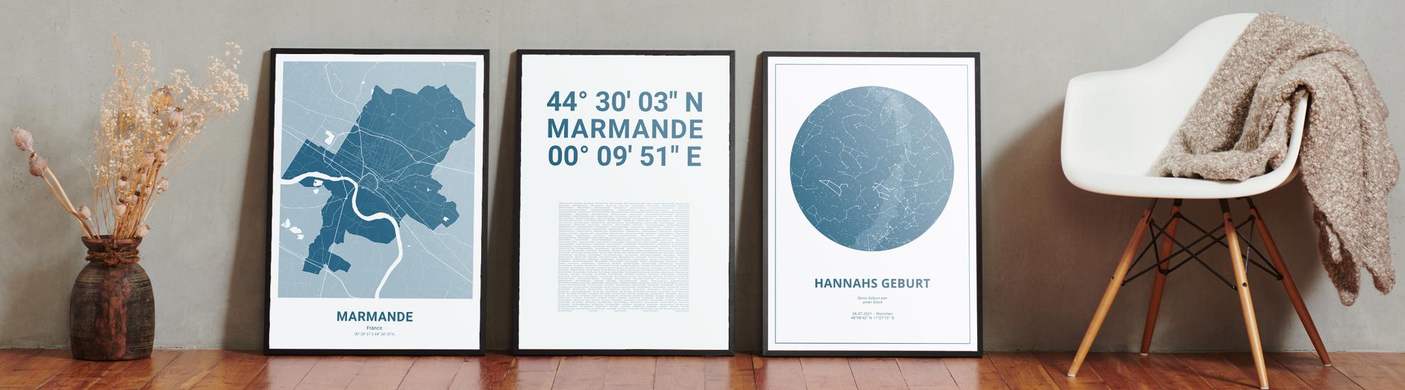 Wähle Farben und Layouts, die perfekt zu dir passen. Ob als klassische Karte in schwarz-weiß oder in modernen Farben. Bei Cartida kannst du ein Design in deinen Lieblingsfarben wählen. Erstelle eine Variante von Marmande, die perfekt zu dir und deiner Wohnung passt.